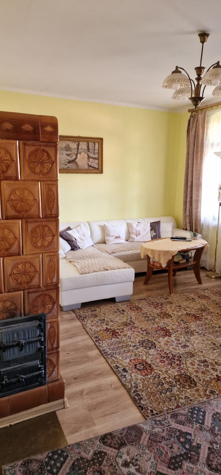 Ogrzewanie za pomocą pieców kaflowych, jednak istnieje możliwość przyłączenia gazu.
